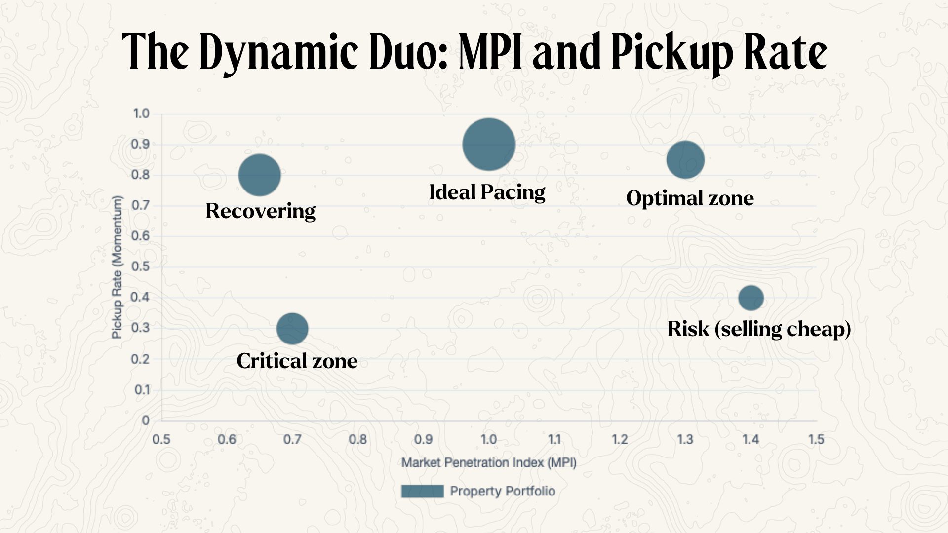 - Market Penetration Index (MPI) is your most important pacing metric: your future occupancy divided by comparable properties’ future occupancy
